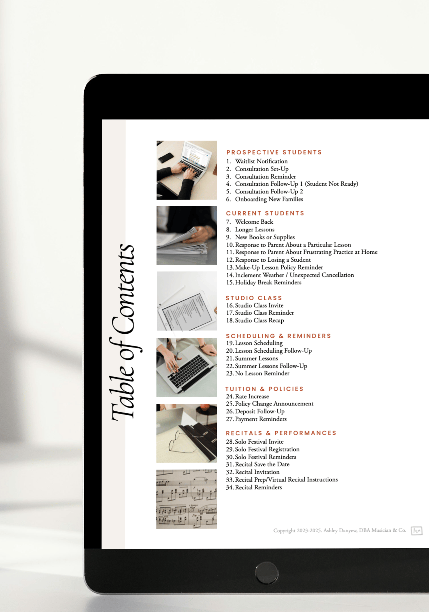 Save time and stay organized with a year’s worth of pre-written email templates you can personalize in minutes. Perfect for private music teachers and studio owners who want to streamline communication and spend less time on admin work.