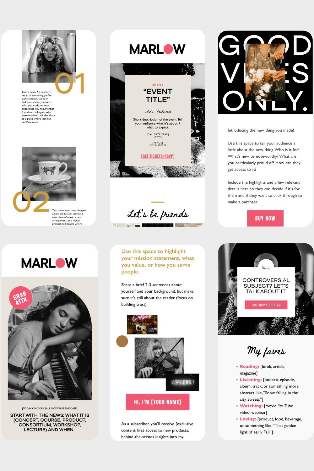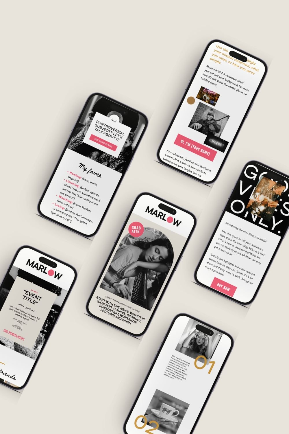 The Marlow Collection is a set of six fully customizable Flodesk email templates designed for musicians and creatives who aren’t afraid to stand out.