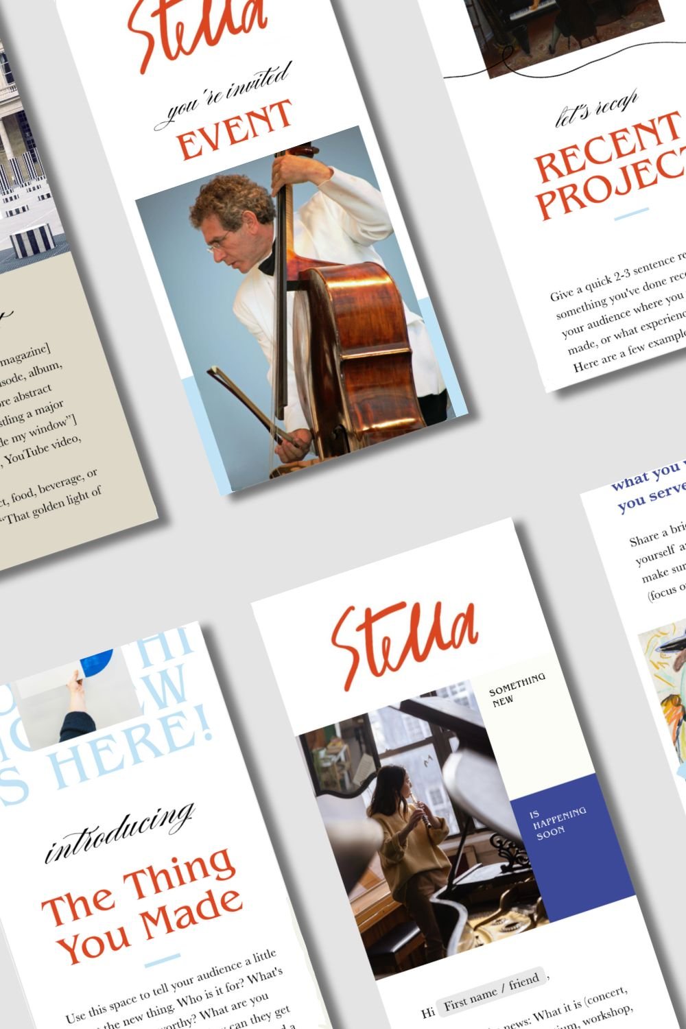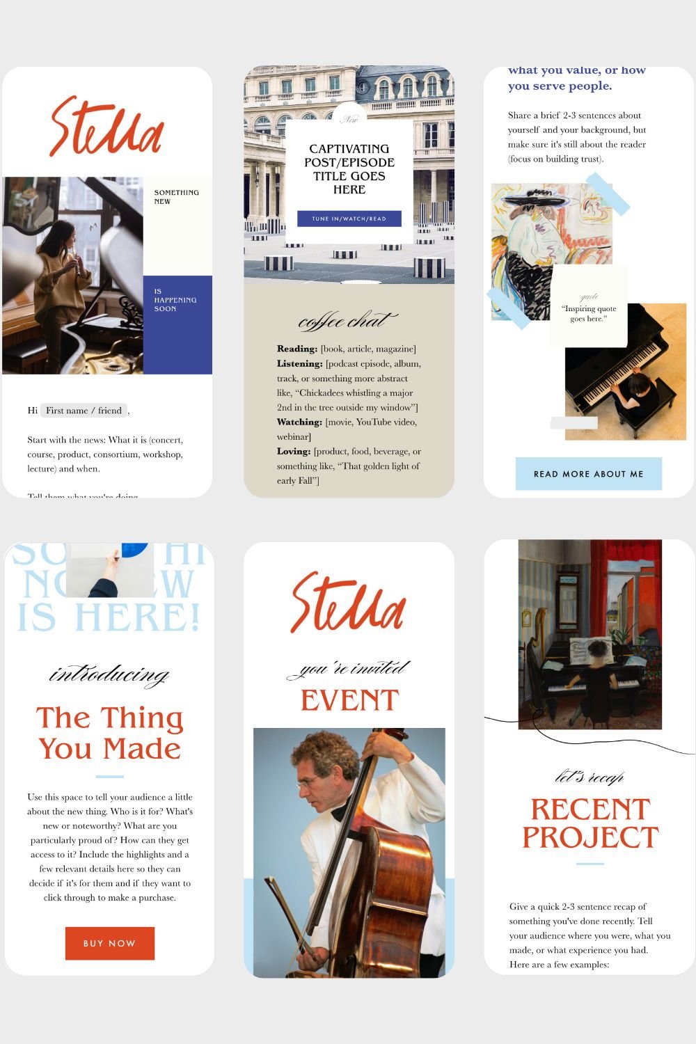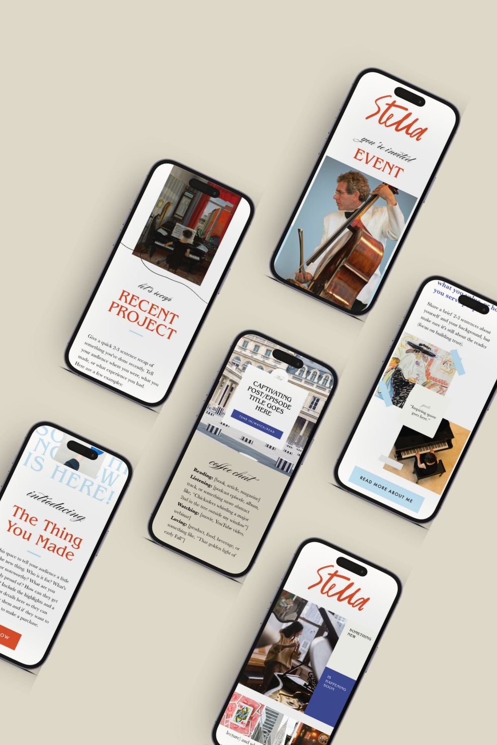 The Stella Collection is a set of six French-inspired, fully customizable Flodesk templates designed for musicians and creative professionals who want to show up beautifully, professionally, and consistently, without spending hours designing every email.