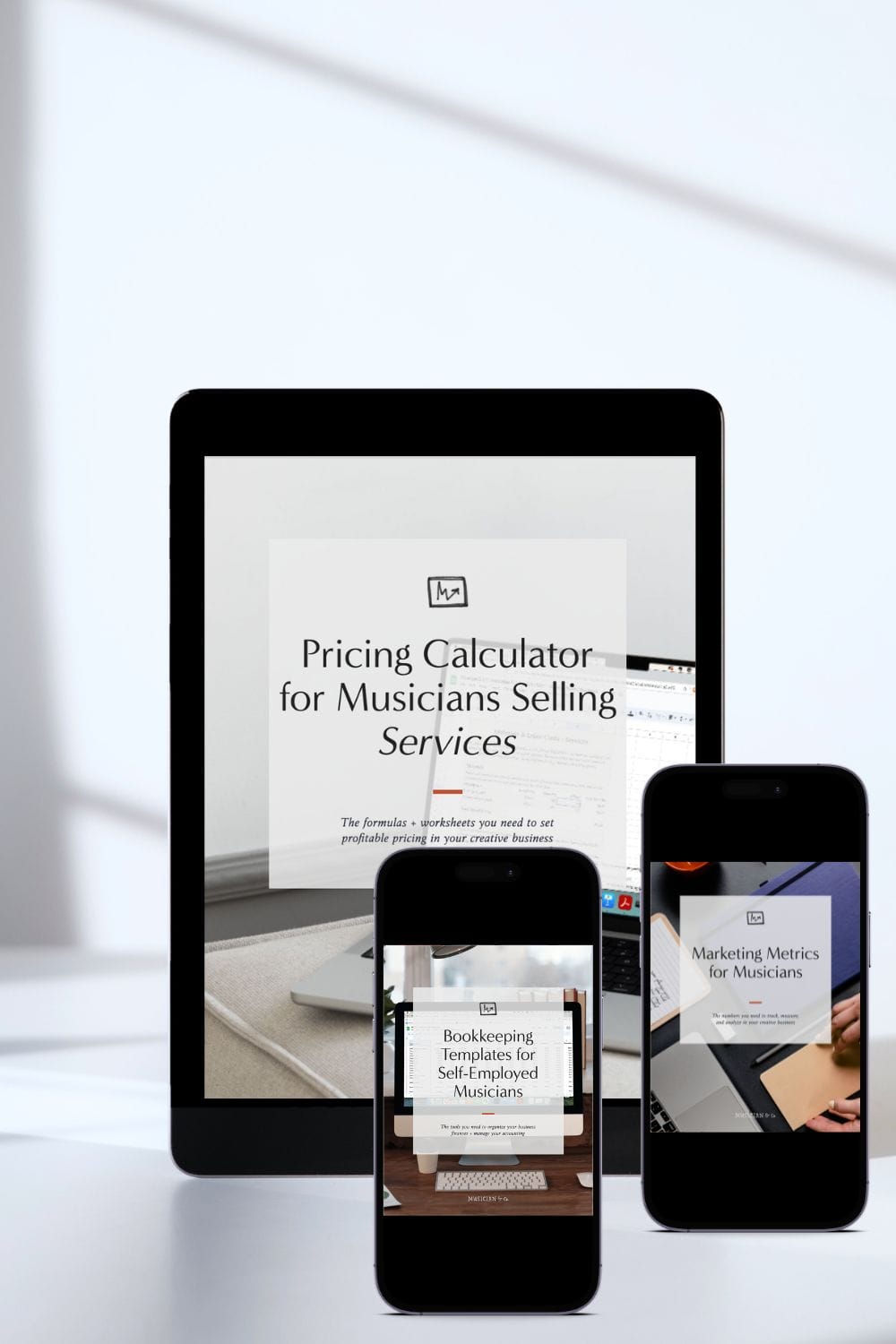 Get a pricing calculator built for service-based musicians (it even does the math for you!), a marketing metrics template to help you track and analyze the numbers that matter, and a suite of customizable bookkeeping templates.