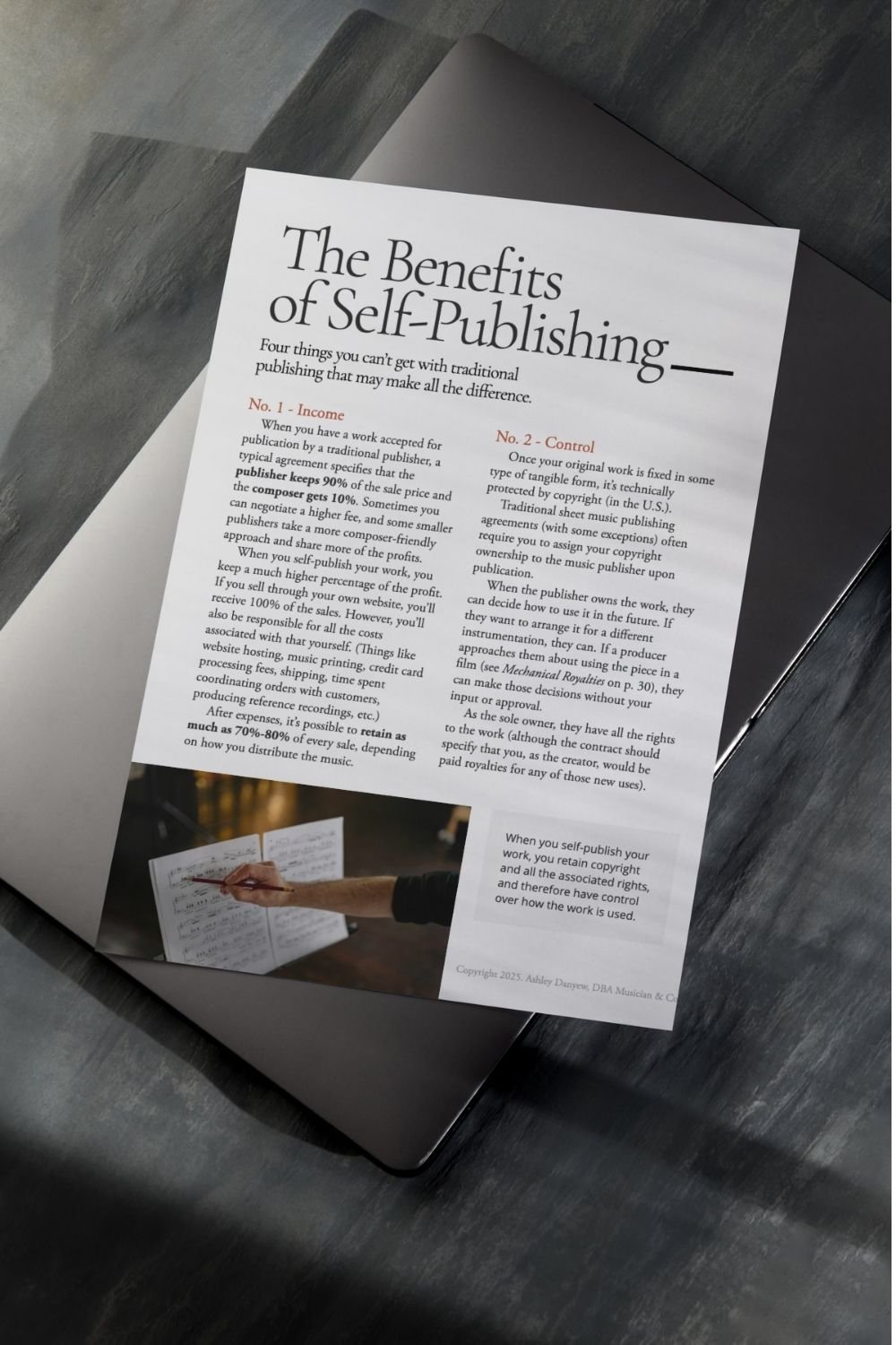Written for performers, teachers, composers, and arrangers, this 40-page guide gives you the tools to confidently self-publish your music while protecting your work and your revenue.